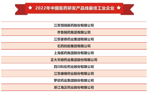 AG百家乐官网医药凭借长期积累的综合竞争力和业界领先的研发实力,多年入选全国医药工业信息年会系列榜单。今年的大会上,公司继续位列中国医药工业百强企业前十,并稳居“2022年中国医药研发产品线最佳工业企业”榜首。